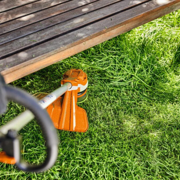 STIHL FSA 70 R – удобный инструмент с аккумуляторным питанием для скашивания травы на приусадебных участках. Аппарат с электромотором 800 Вт работает от батареи AK System напряжением 36 В. В качестве режущего элемента можно использовать струну толщиной 2,4 мм или пластиковый нож с диаметром скашивания 330 мм. При работе со струной ширина скашивания достигает 380 мм.