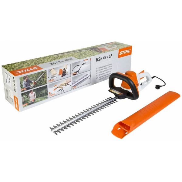 - STIHL HSE 42 — это бытовой садовый кусторез с быстрым ходом ножей и высокой производительностью, который способен эффективно обрезать ветки небольшого и среднего диаметра.