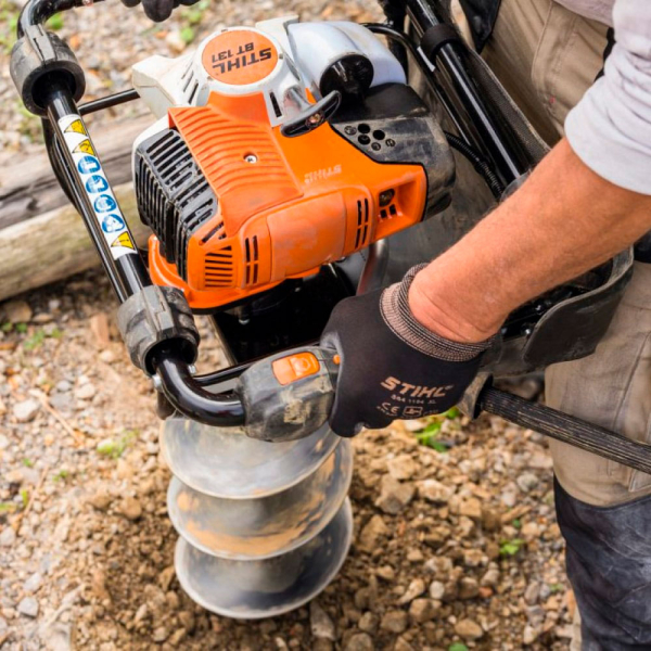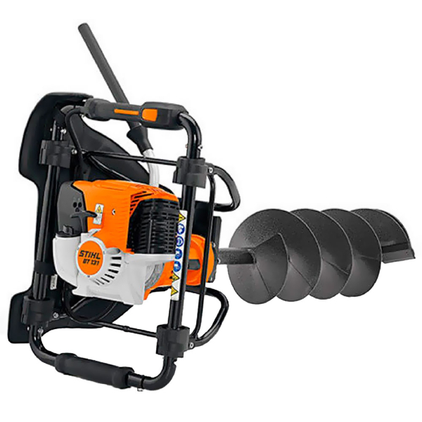 - STIHL BT 131 поддерживает разные диаметры буров (до 200 мм), что делает его идеальным для многих задач – от посадки деревьев до установки заборов и бурения скважин.