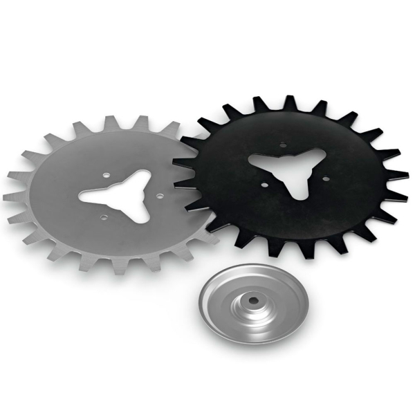 - Специальная форма и заточка лезвий позволяют эффективно срезать густую траву, кустарники и даже молодые деревья. Диски имеют несколько острых зубьев, которые легко справляются с плотной растительностью.