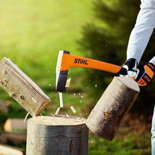 - Топор STIHL AX 15 P универсального предназначения. С его помощью пользователь сможет наколоть дрова, обрубать сучья на дереве.